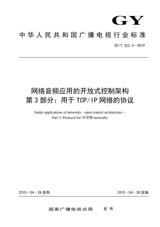 GY/T 322.3-2019 网络音频应用的开放式控制架构 第3部分:用于 TCP/IP 网络的协议
