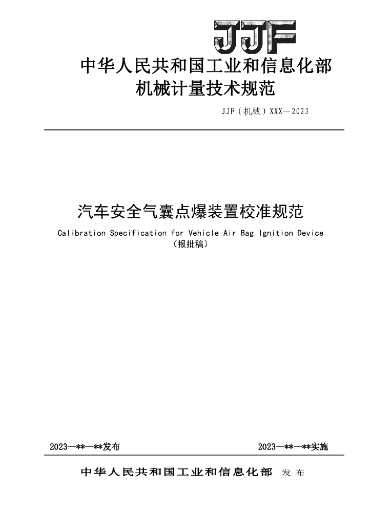 JJF(机械)1104-2023 汽车安全气囊点爆装置校准规范(报批稿)