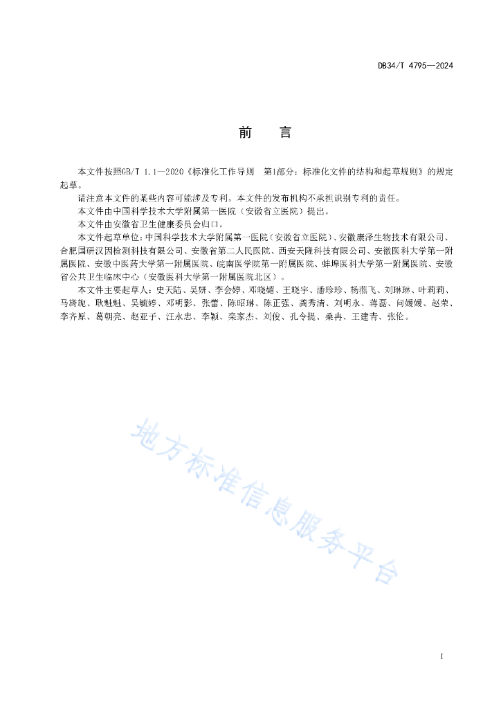 中国科学技术大学附属第一医院(安徽省立医院)、安徽康泽生物技术有限公司、合肥国研汉因检测科技有限公司、安徽省第二人民医院、西安天隆科技有限公司、安徽医科大学第一附属医院、安徽中医药大学第一附属医院、皖南医学院第一附属医院、蚌埠医科大学第一附属医院、安徽省公共卫生临床中心(安徽医科大学第一附属医院北区)