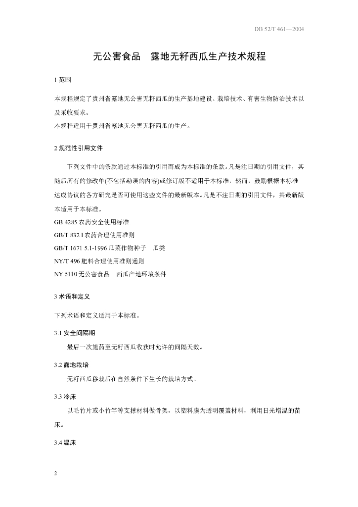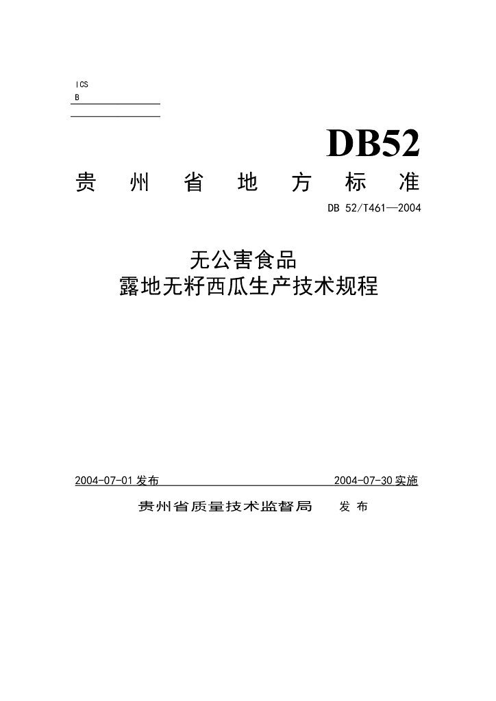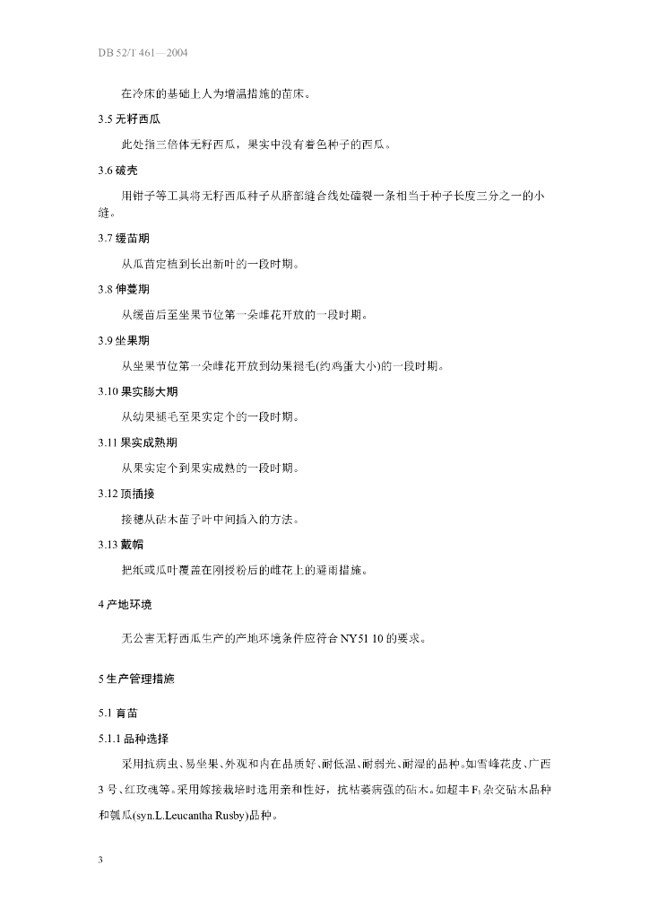 DB52/T 461-2004 无公害食品 露地无籽西瓜生产技术规程