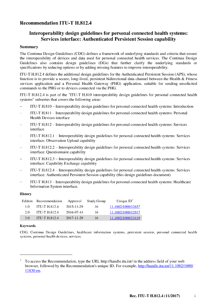 ITU-T H.812.4-2017 医疗卫生系统个人连接互操作性设计指南 服务接口 经验证持续对话功能