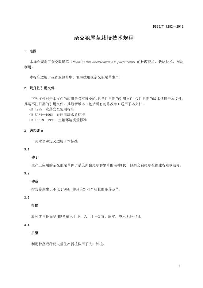 DB35/T 1282-2012 杂交狼尾草栽培技术规程