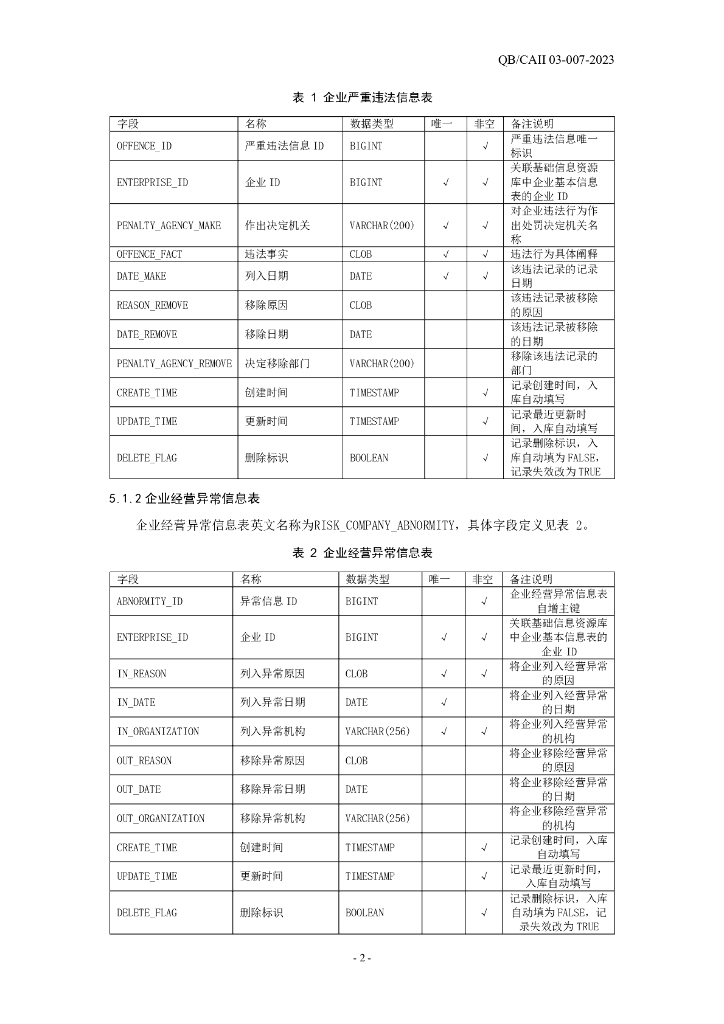 QB/CAII 03-007-2023 国家工业互联网大数据中心体系 企业风险信息库 数据标准与数据接口规范