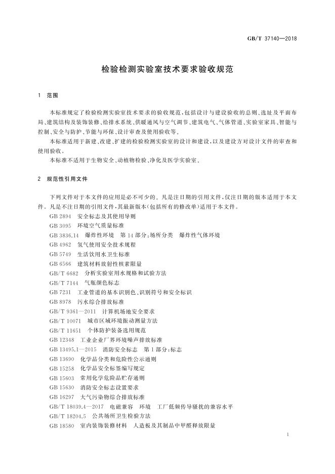 GB/T 37140-2018 检验检测实验室技术要求验收规