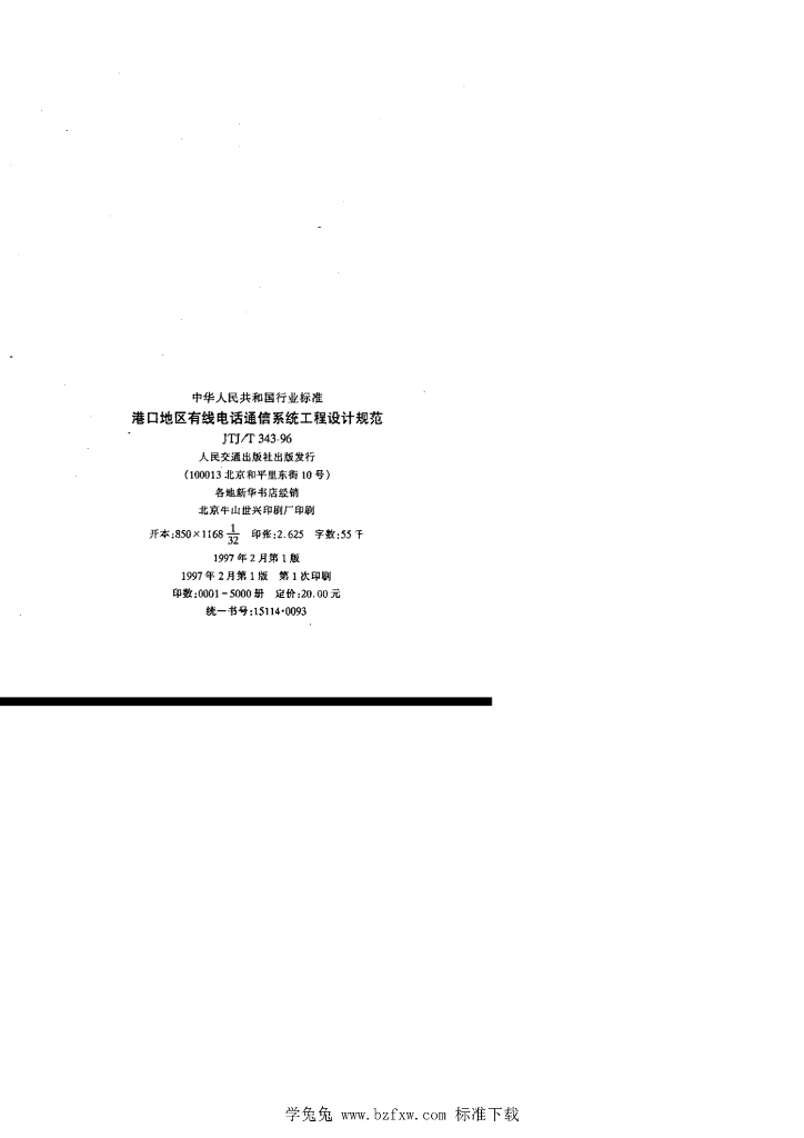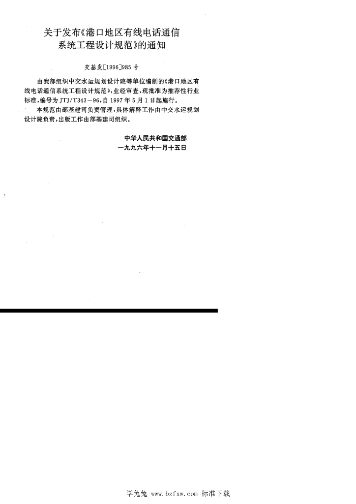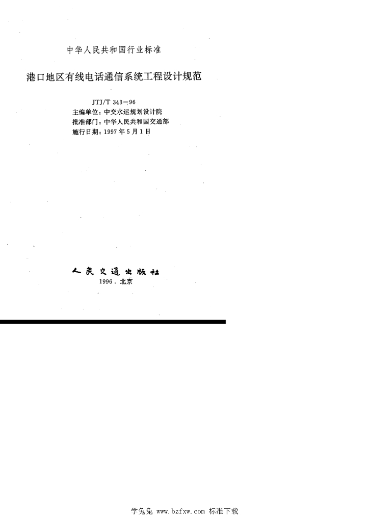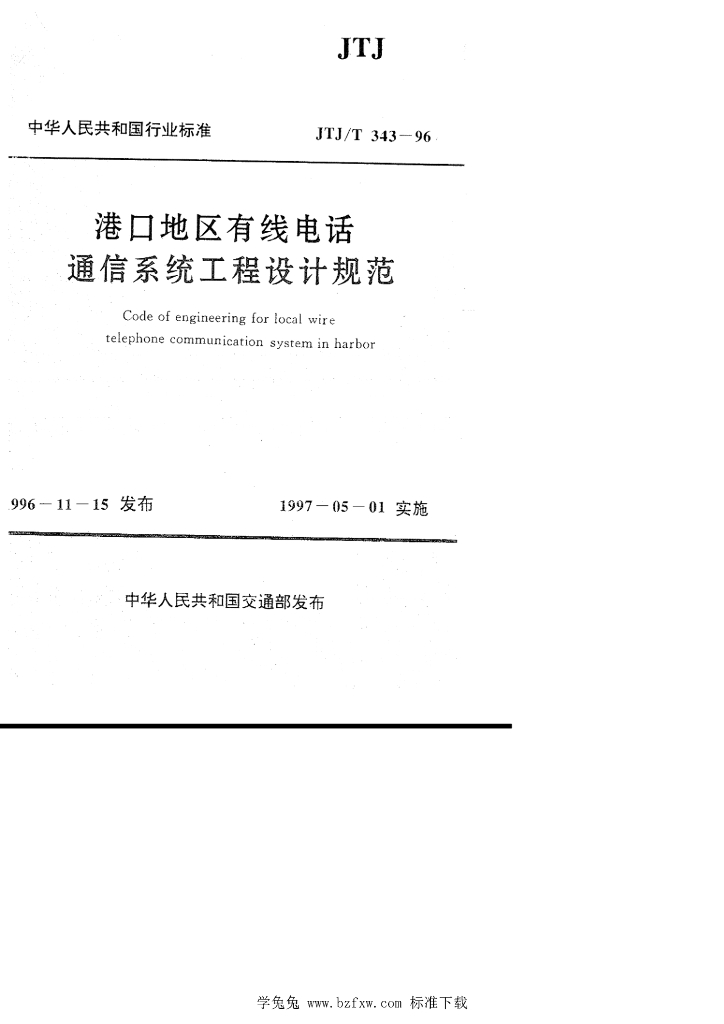 JTJ/T 343-1996 港口地区有线电话通信系统工程设计规范