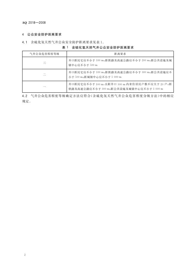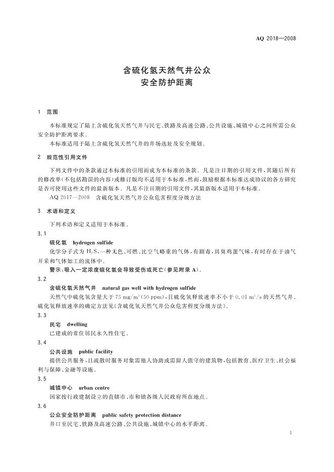 AQ 2018-2008 含硫化氢天然气井公众安全防护距离