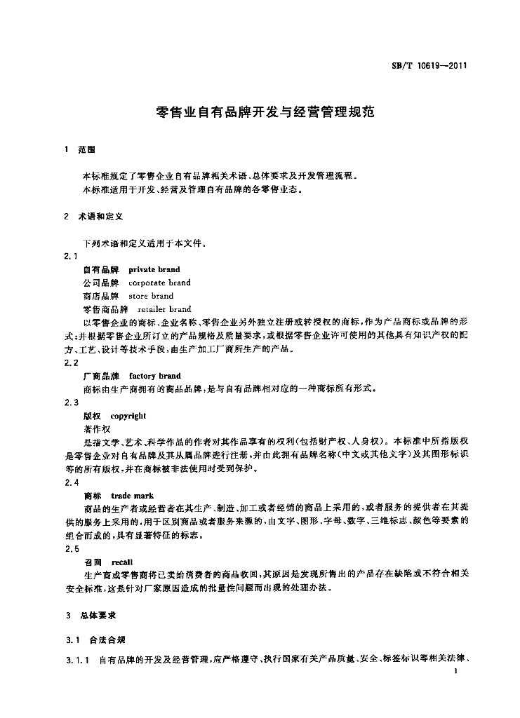 SB/T 10619-2011 零售业自有品牌开发与经营管理规范