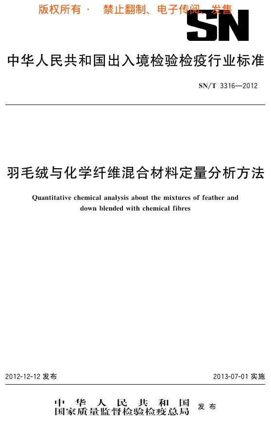 SN/T 3316-2012 羽毛绒与化学纤维混合材料定量分析方法