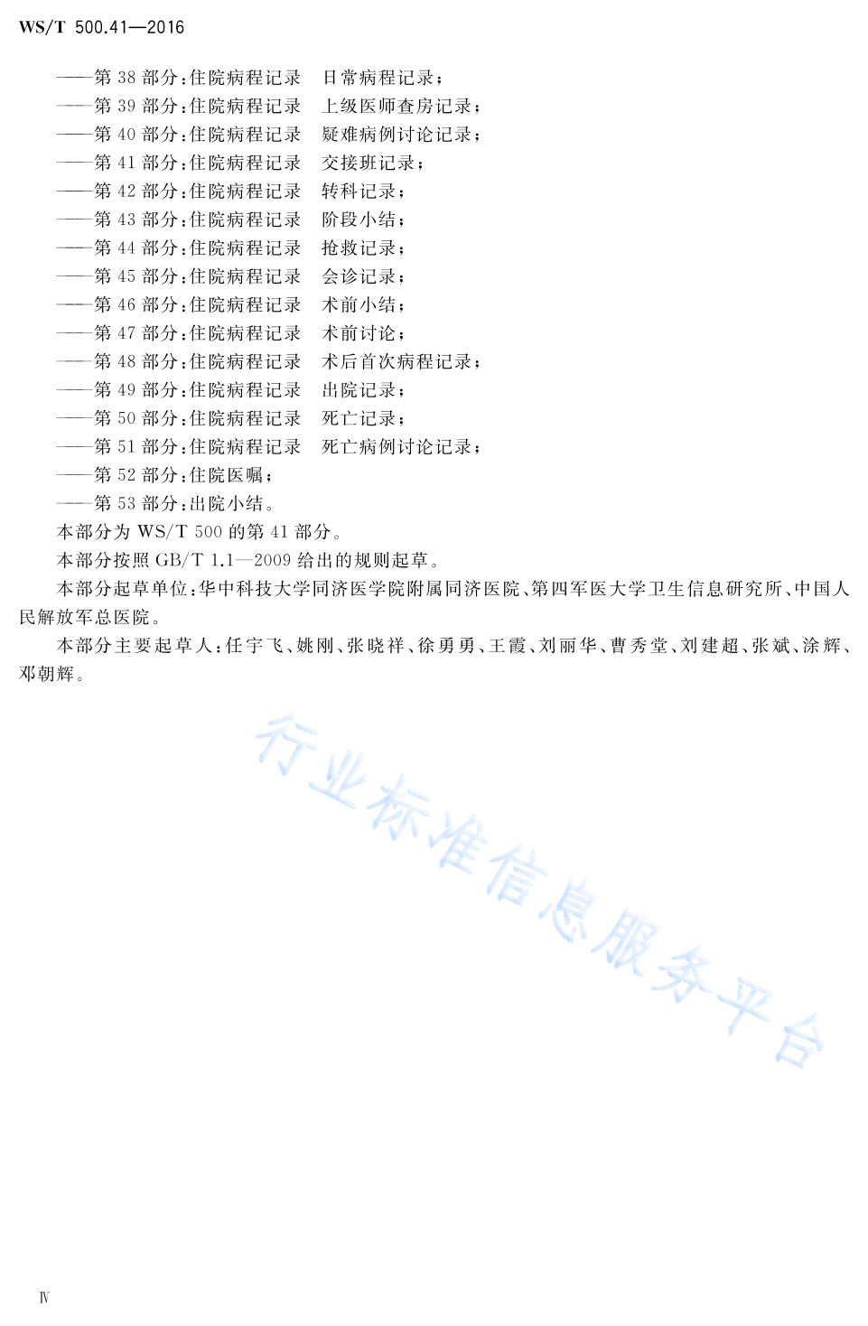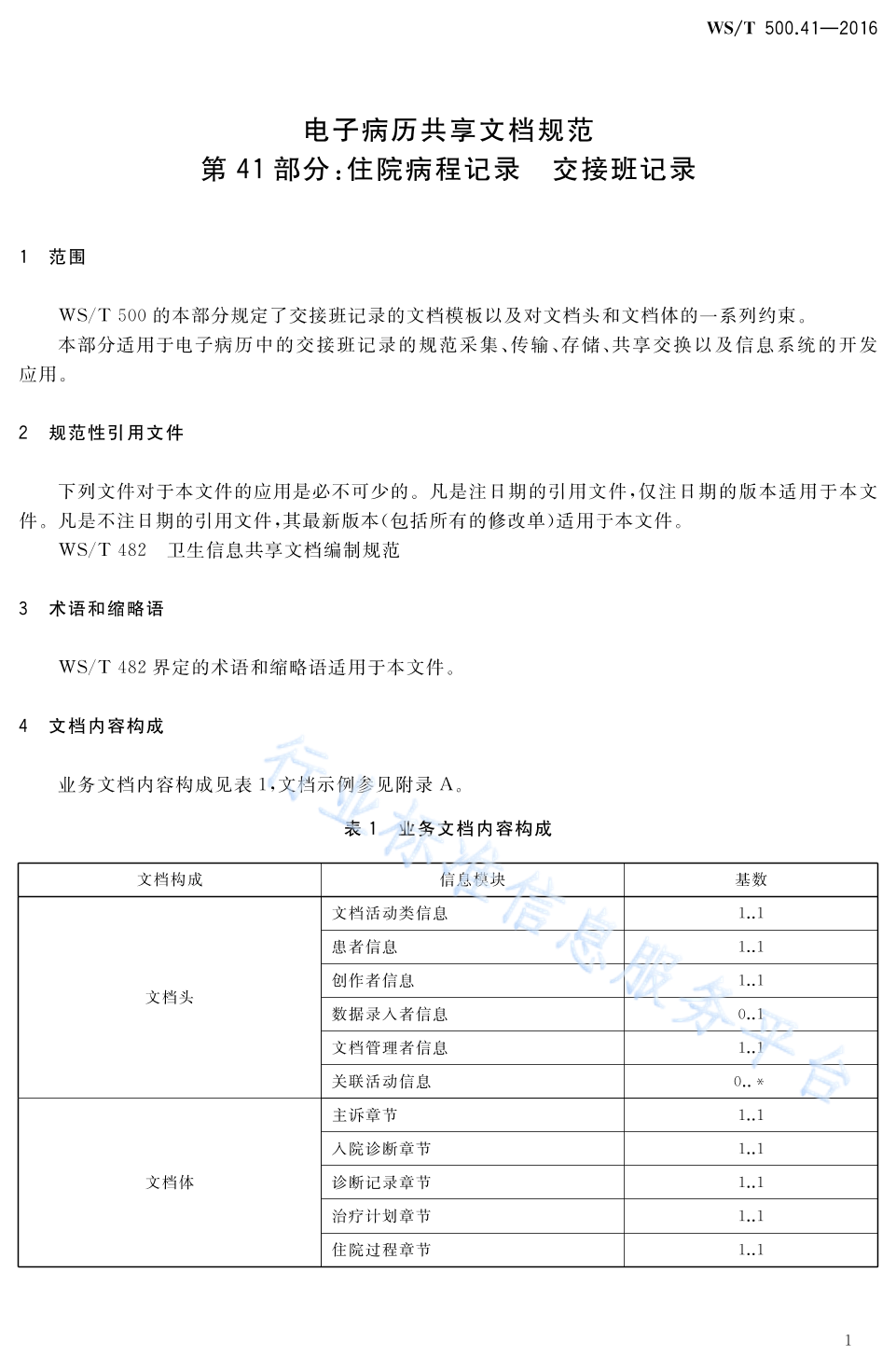WS/T 500.41-2016 电子病历共享文档规范 第41部分:住院病程记录交接班记录