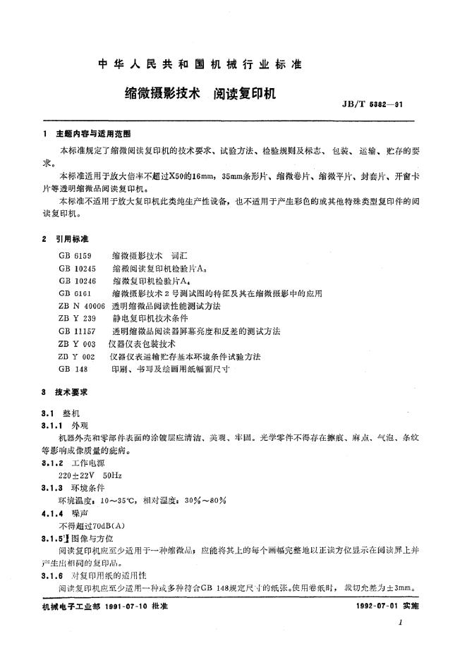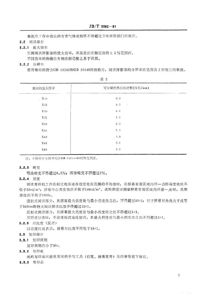 JB/T 5382-1991 缩微摄影技术 阅读复印机