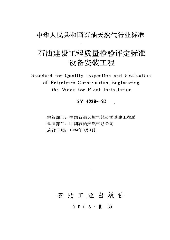 SY 4028-1993 石油建设工程质量检验评定标准设备安装工程