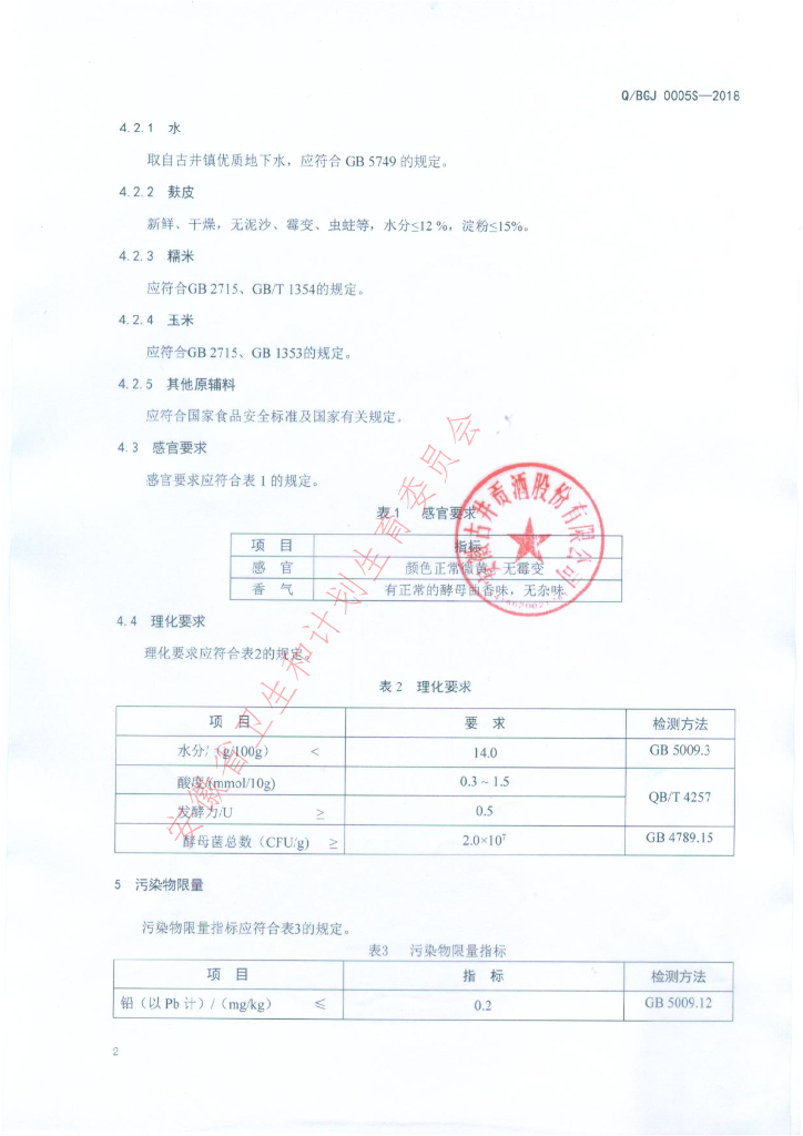 Q/BGJ 0005S-2018 酿酒酵母麸曲
