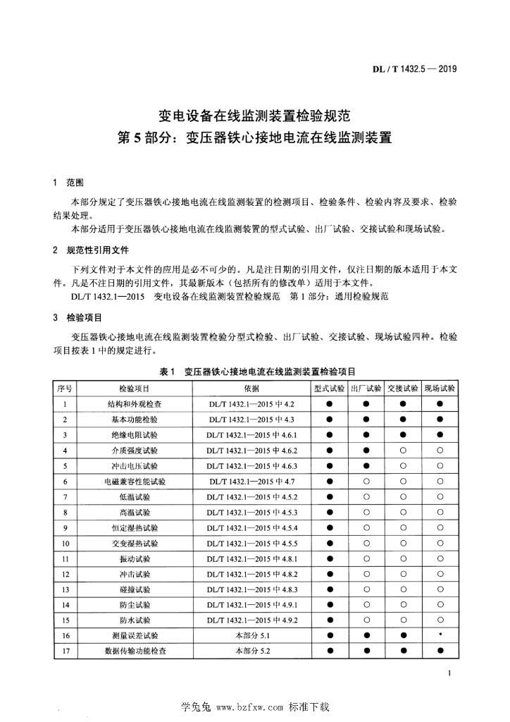 DL/T 1432.5-2019 变电设备在线监测装置检验规范 第5部分:变压器铁心接地电流在线监测装置