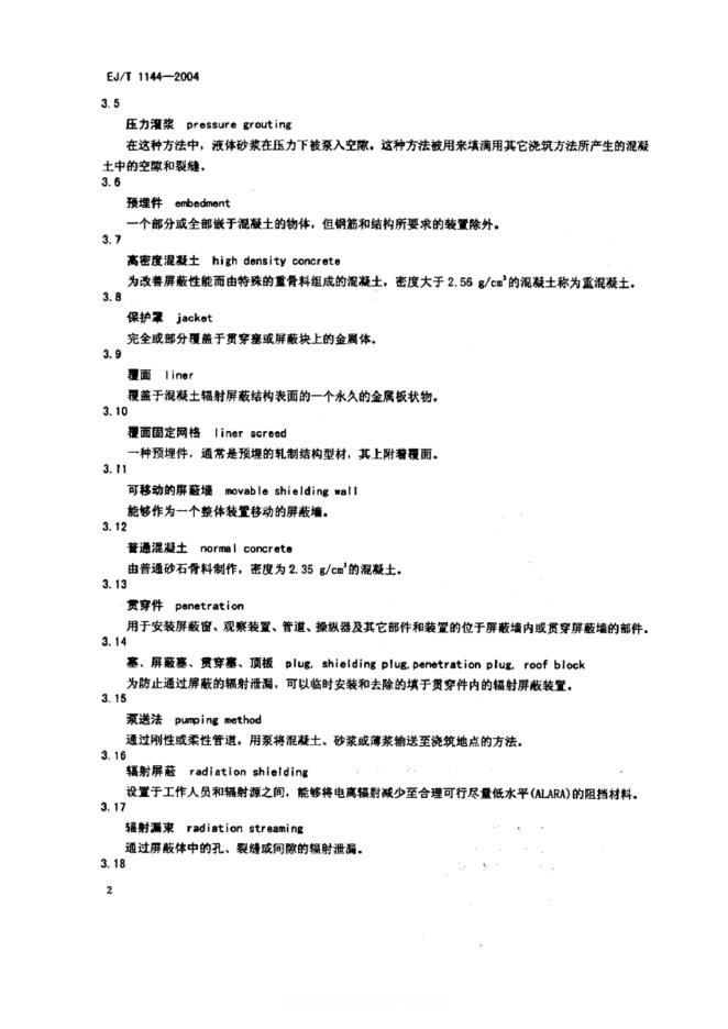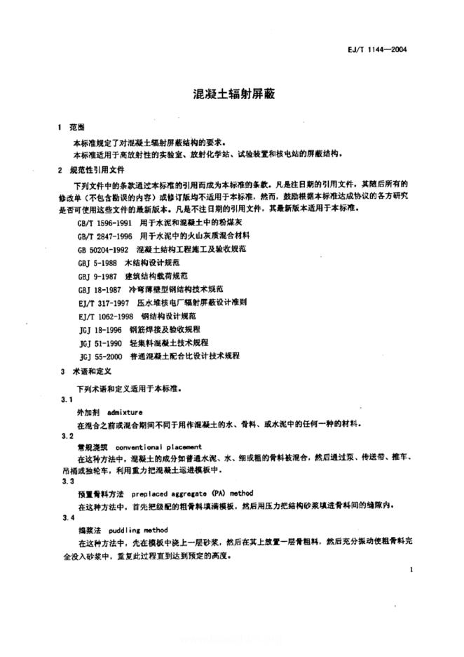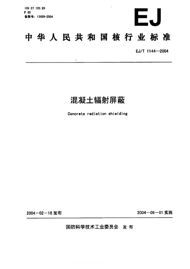 EJ/T 1144-2004 混凝土辐射屏蔽