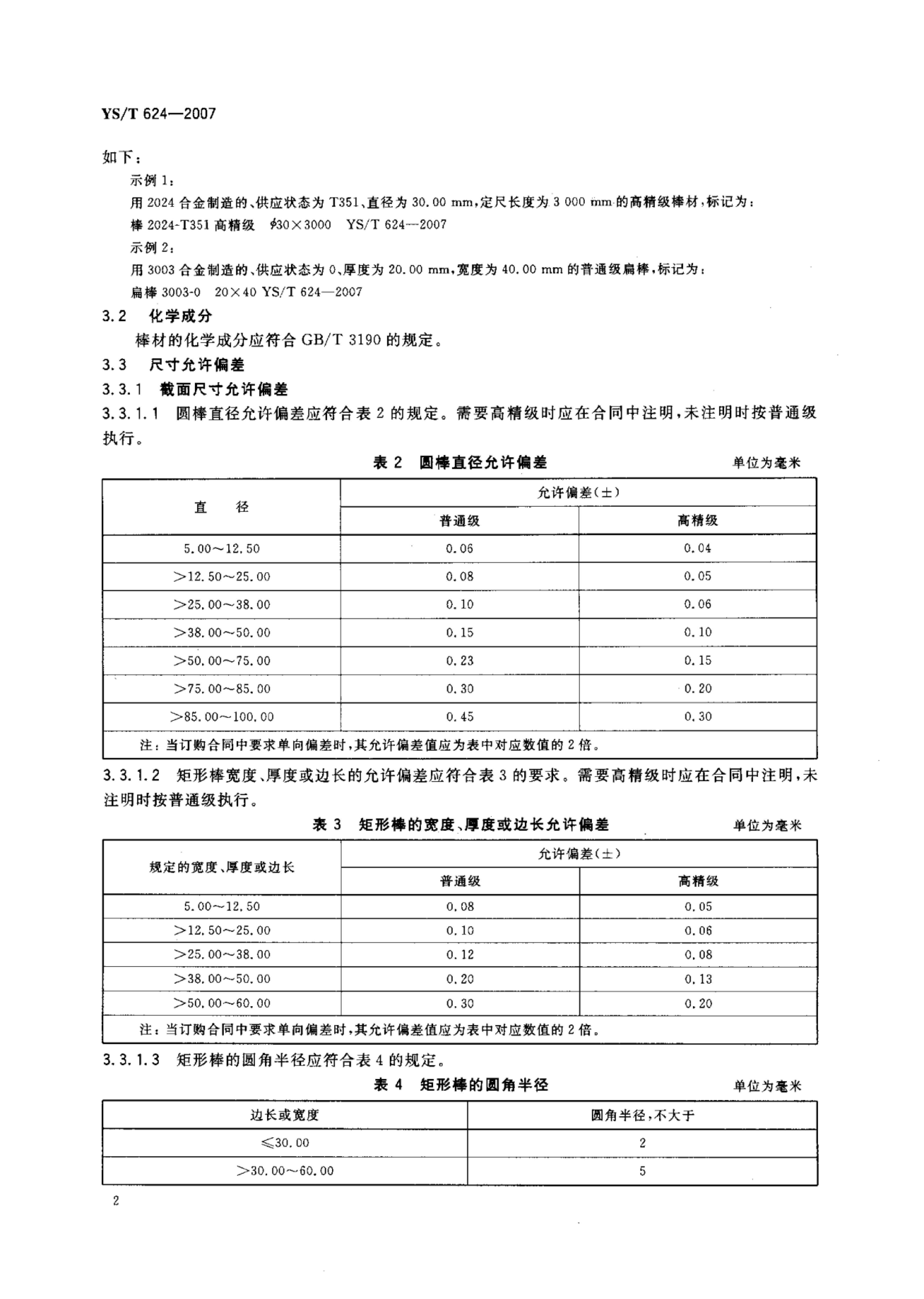 YS/T 624-2007 一般工业用铝及铝合金拉制棒材