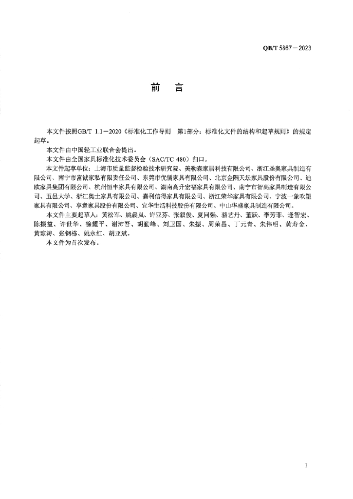 上海市质量监督检验技术研究院、美勒森家居科技有限公司、浙江圣奥家具制造有限公司、南宁市富诚家私有限责任公司、东莞市优儒家具有限公司、北京金隅天坛家具股份有限公司、迪欧家具集团有限公司、杭州恒丰家具有限公司、湖南高升宏福家具有限公司、南宁市智高家具制造有限公司、五邑大学、浙江奥士家具有限公司、嘉利信得家具有限公司、浙江荣华家具有限公司、宁波一象吹塑家具有限公司、享意家具股份有限公司、宜华生活科技股份有限公司、中山华盛家具制造有限公司