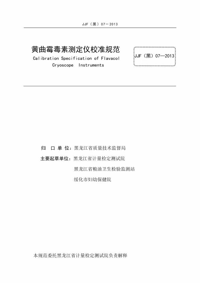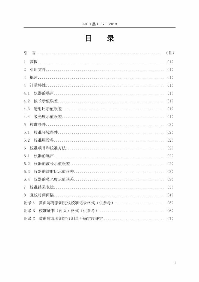 JJF(黑)07-2013 黄曲霉毒素测定仪校准规范
