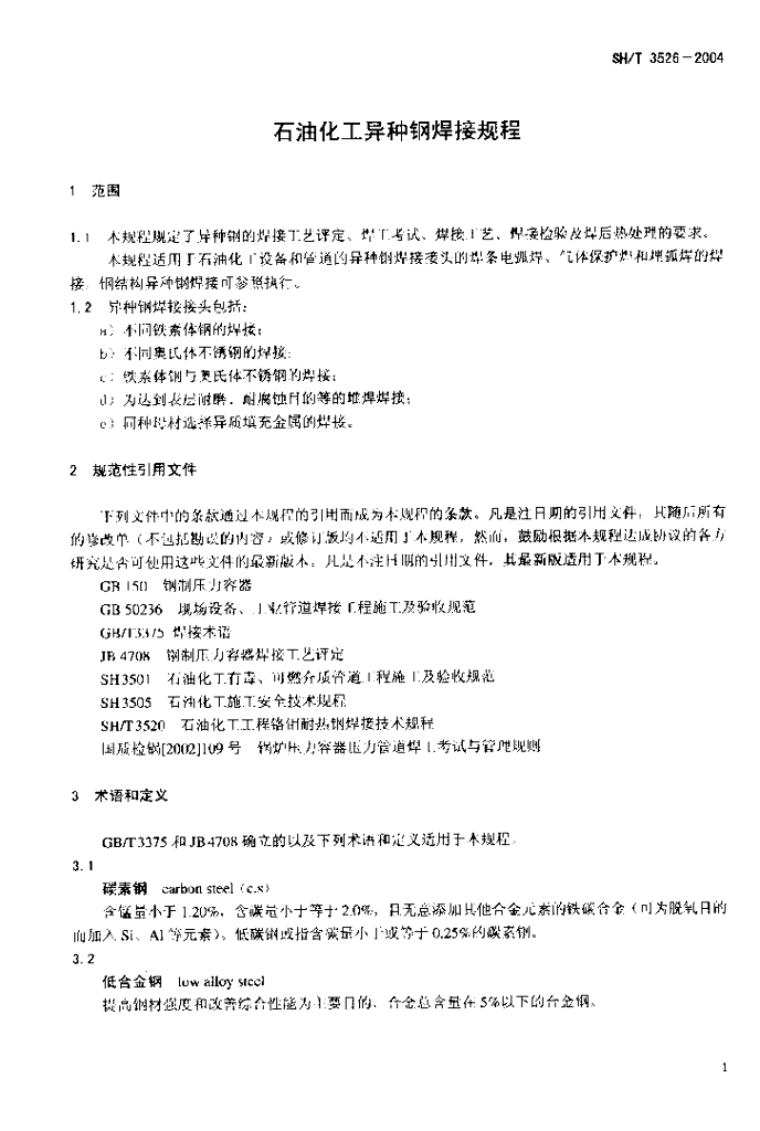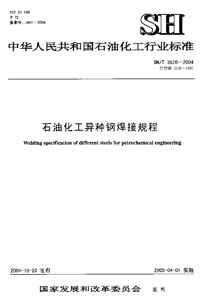 SH/T 3526-2004 石油化工异种钢焊接规程