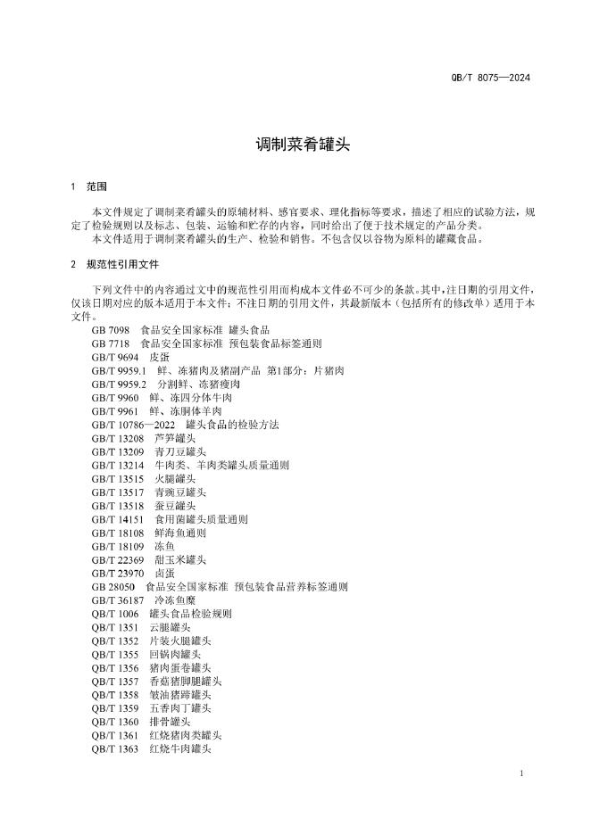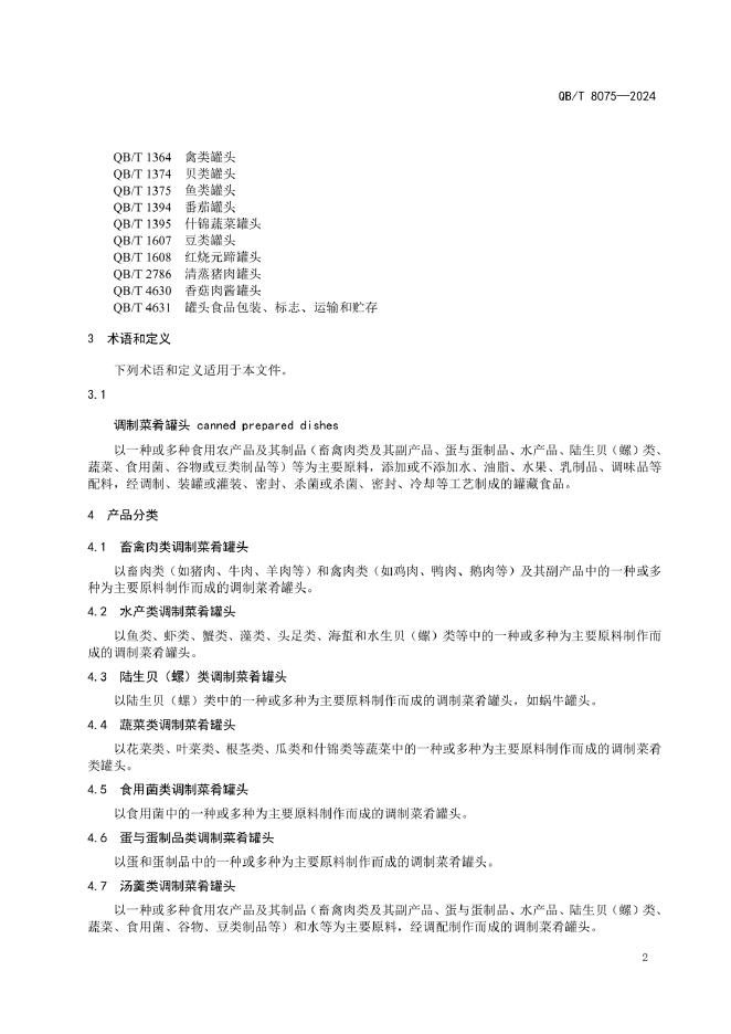 QB/T 8075-2024 调制菜肴罐头