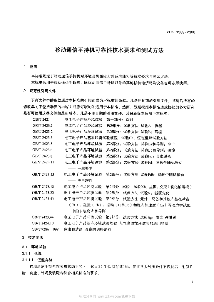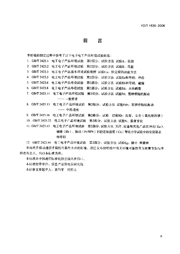 YD/T 1539-2006 移动通信手持机可靠性技术要求和测试方法