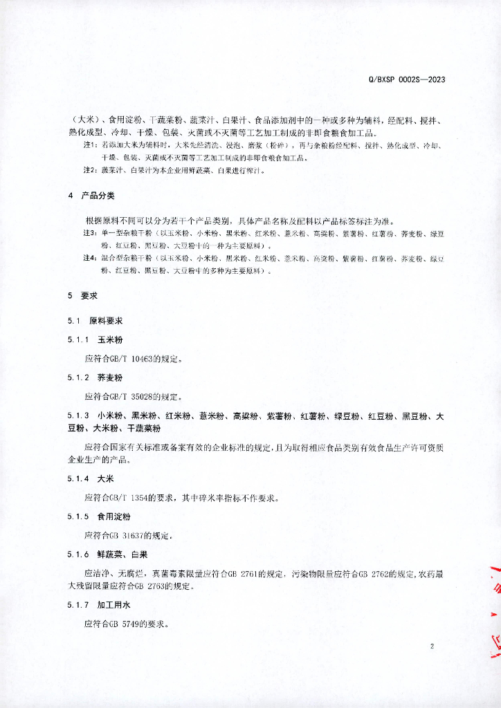 Q/BXSP 0002S-2023 杂粮干粉