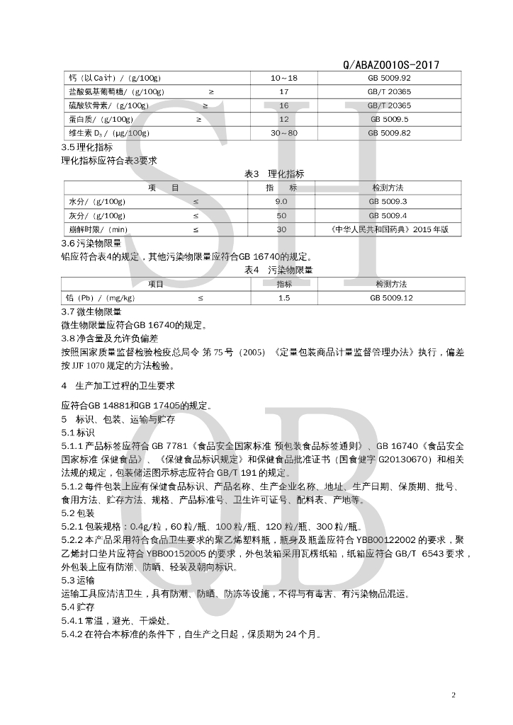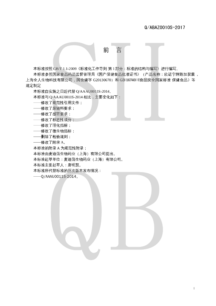 Q/ABAZ 0010S-2017 欣诺宁牌路加胶囊
