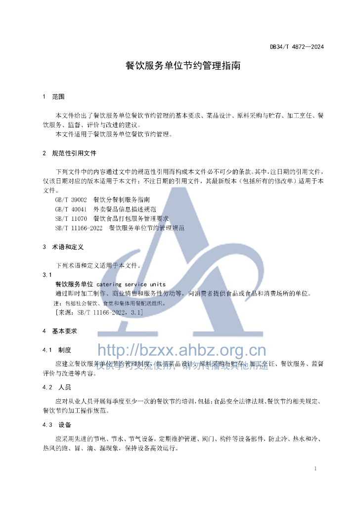 DB34/T 4872-2024 餐饮服务单位节约管理指南