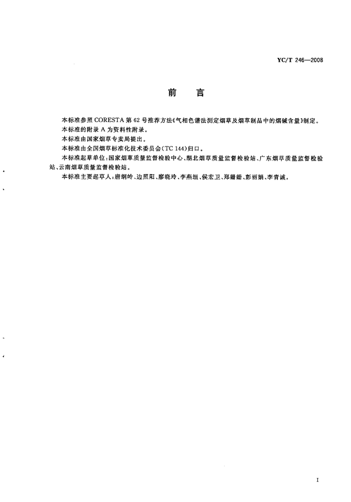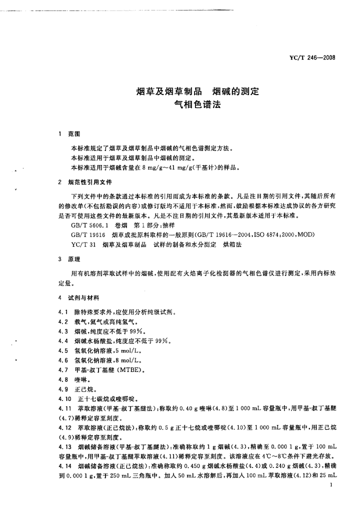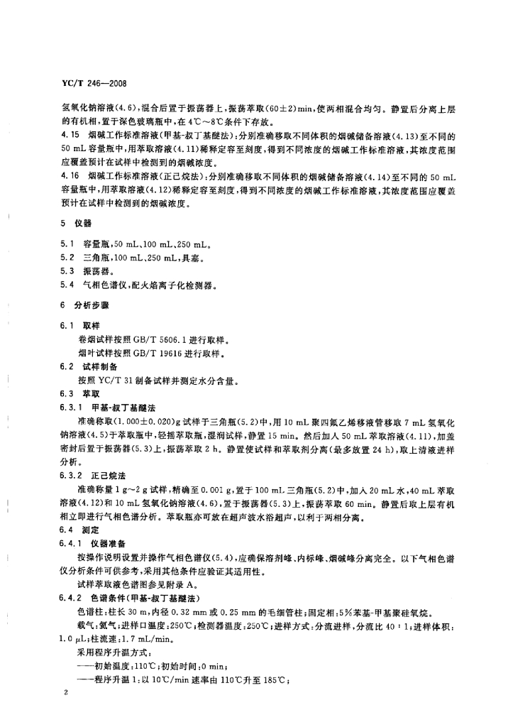 YC/T 246-2008 烟草及烟草制品烟碱的测定 气相色谱法