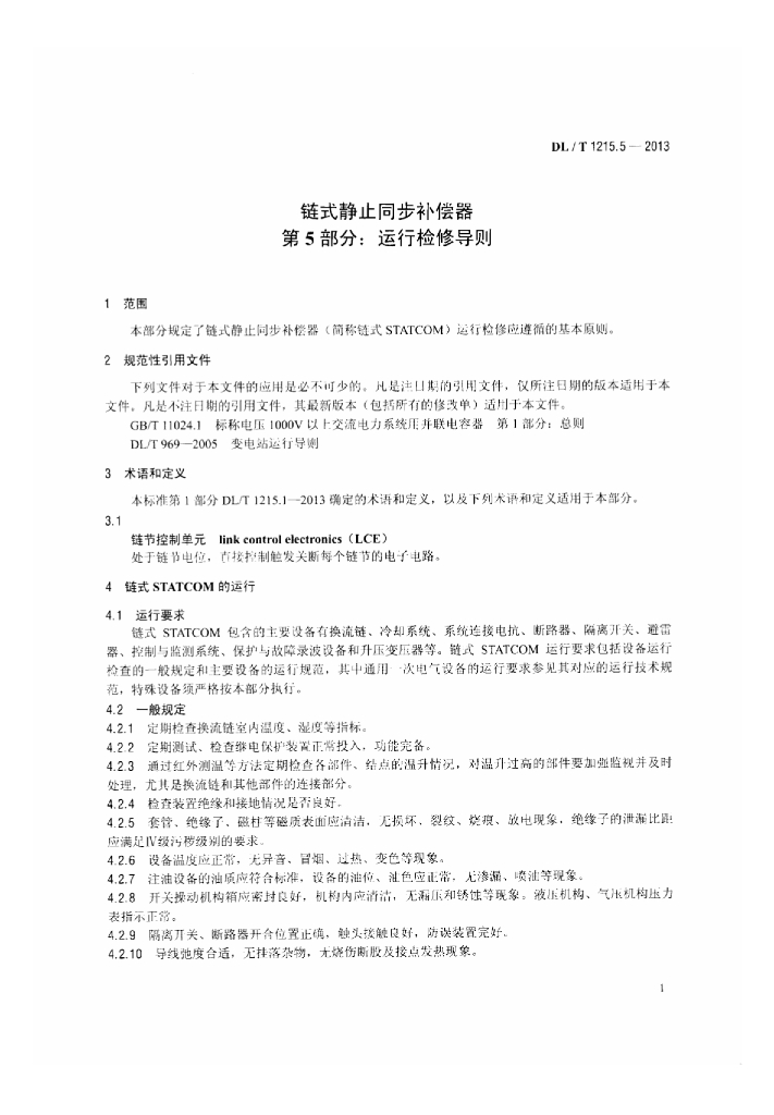 DL/T 1215.5-2013 链式静止同步补偿器 第5部分:运行检修导则