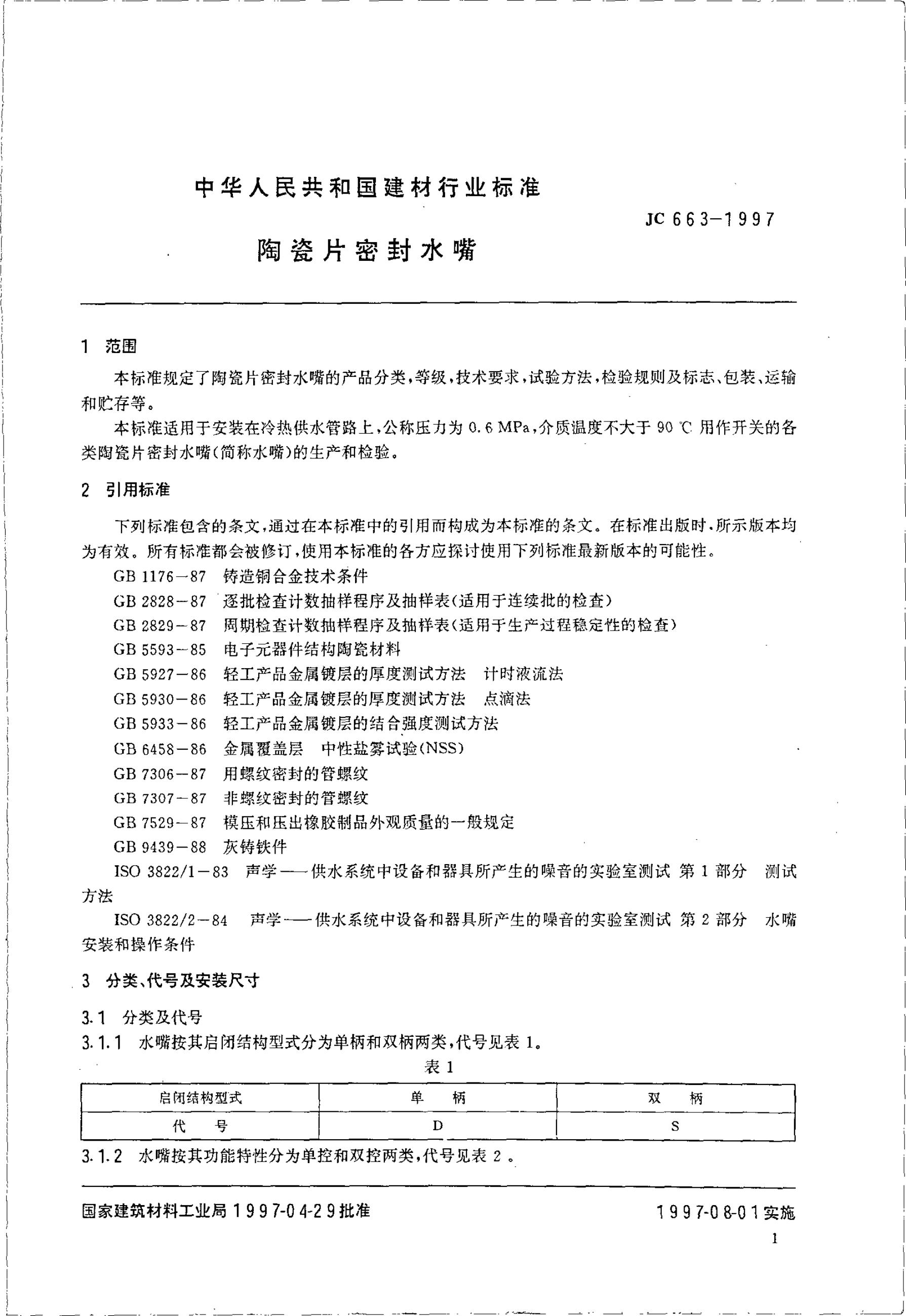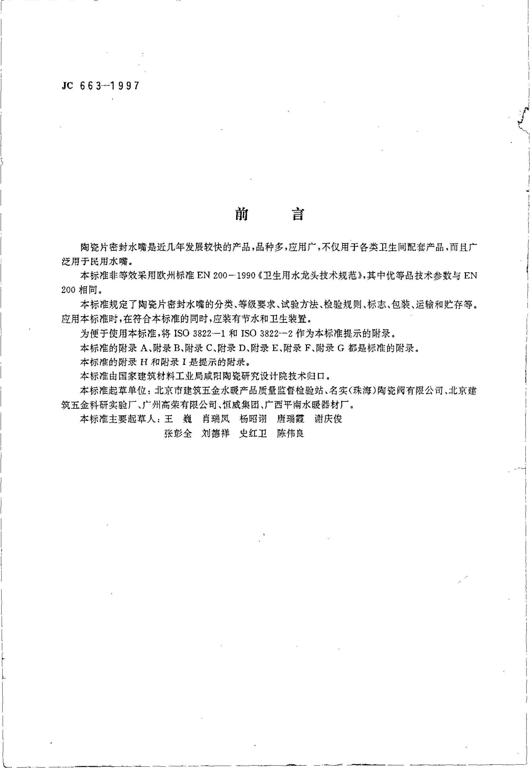 JC 663-1997 陶瓷片密封水嘴
