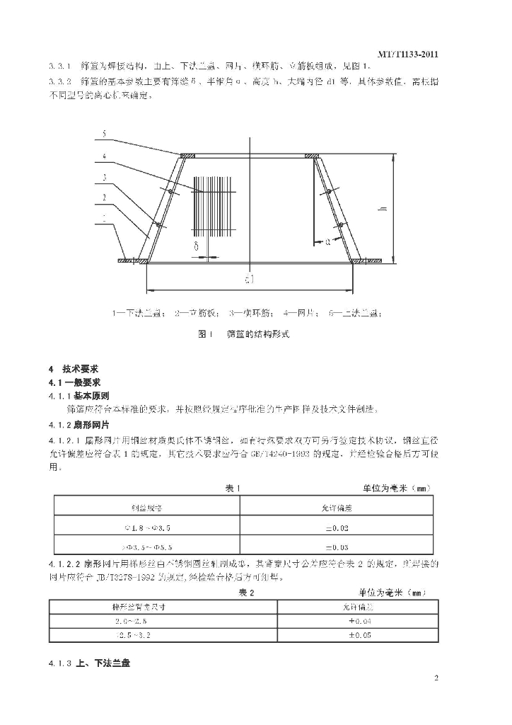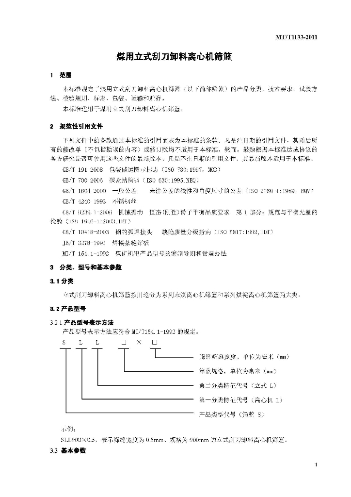 MT/T 1133-2011 煤用立式刮刀卸料离心机筛篮