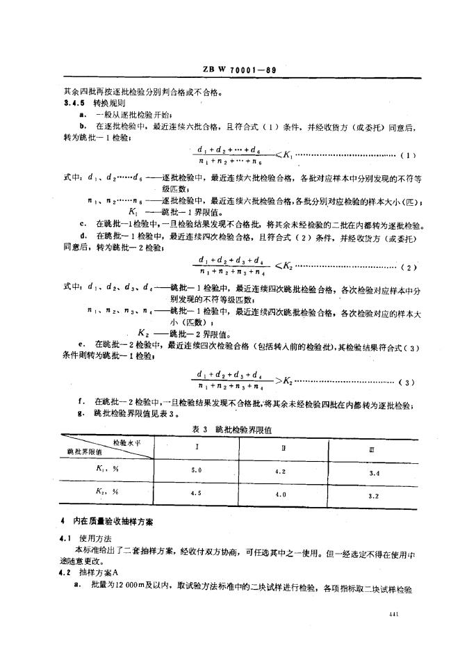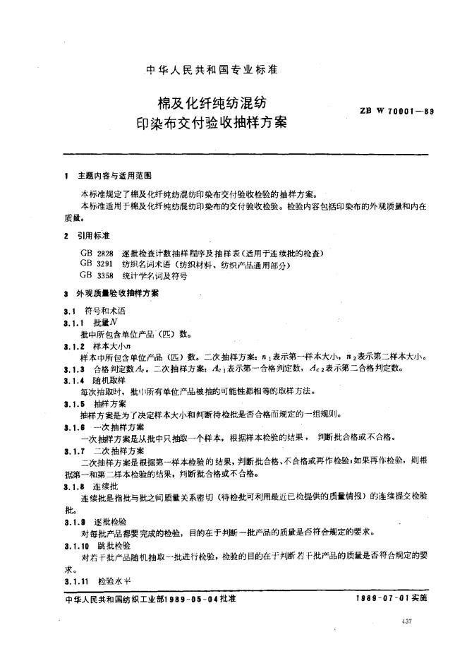 ZBW 70001-1989 棉及化纤纯纺混纺印染布交付验收抽样方案