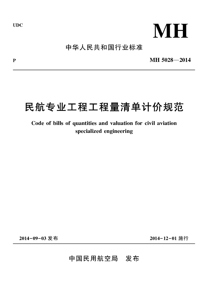 MH 5028-2014 民航专业工程工程量清单计价规范