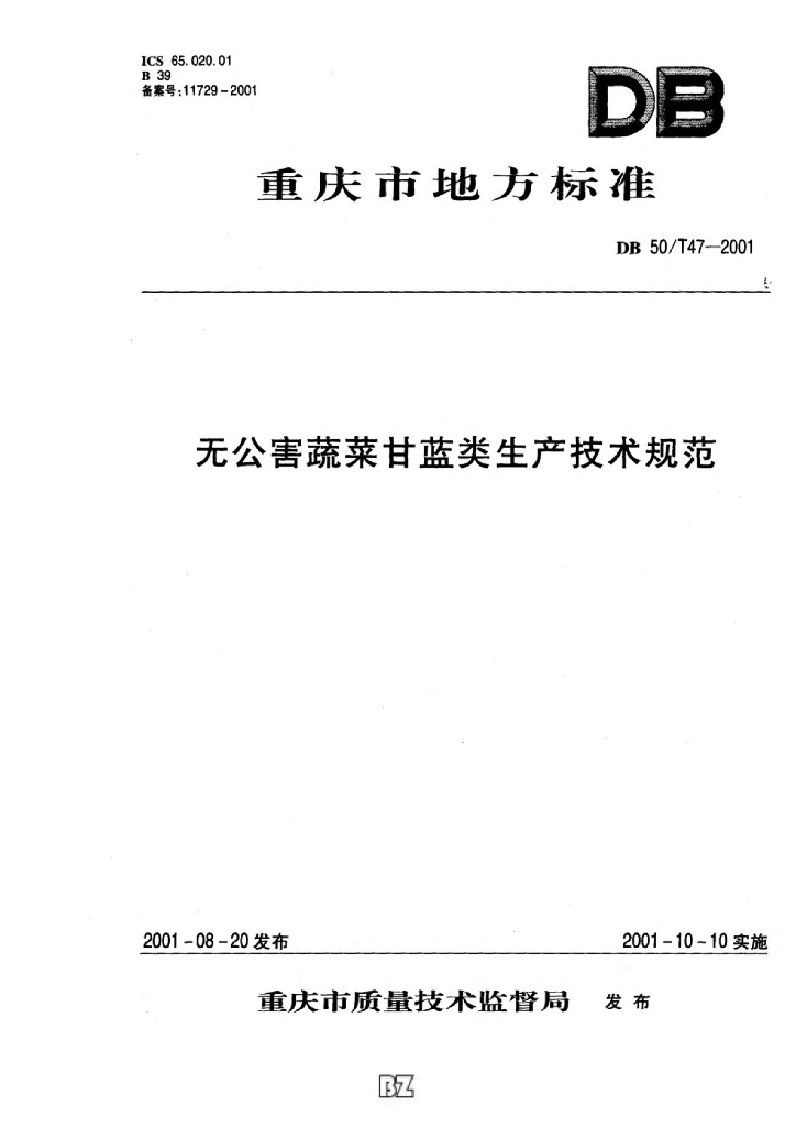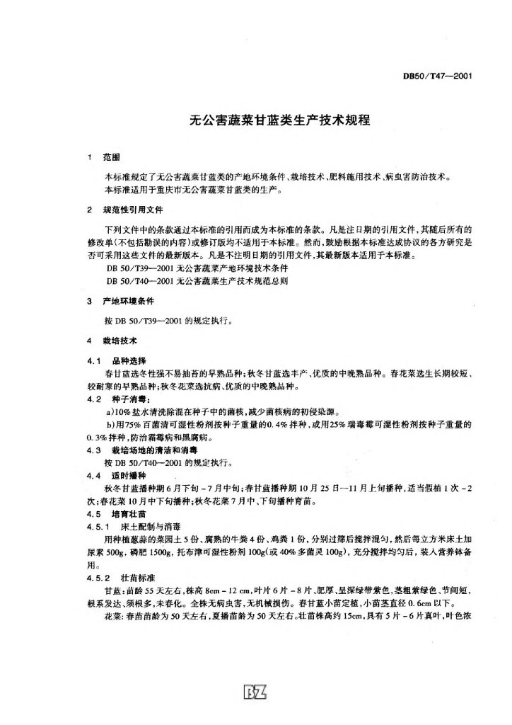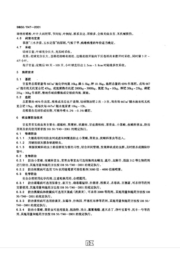 DB50/T 47-2001 无公害蔬菜甘蓝类生产技术规范