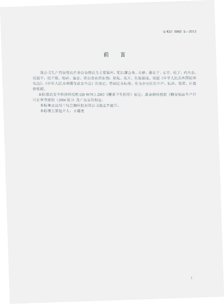 Q/SKZ 0002S-2012 金银花片(压片糖果)