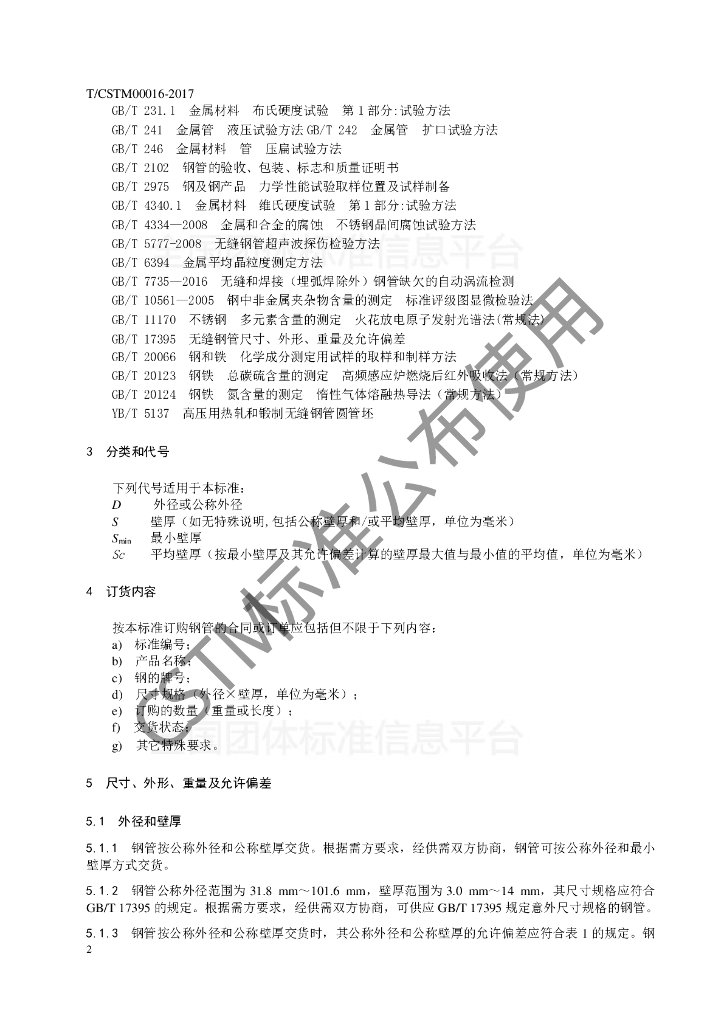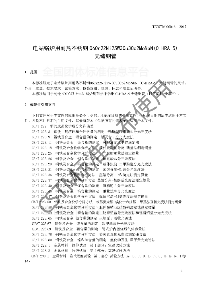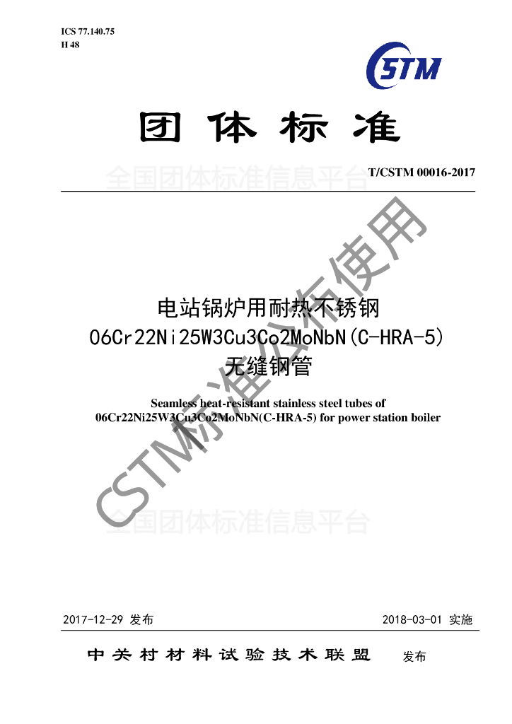 T/CSTM 00016-2017 电站锅炉用耐热不锈钢06Cr22Ni25W3Cu3Co2MoNbN(C-HRA-5)无缝钢管