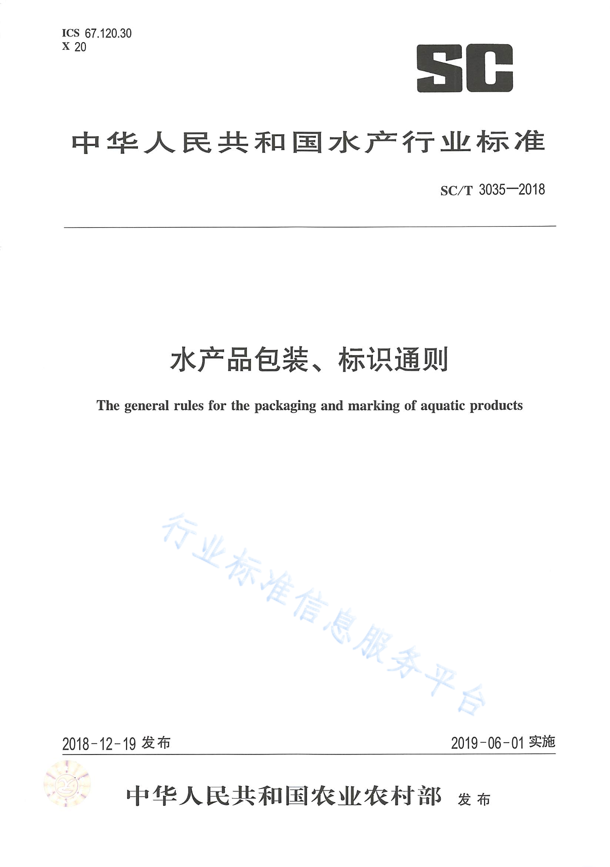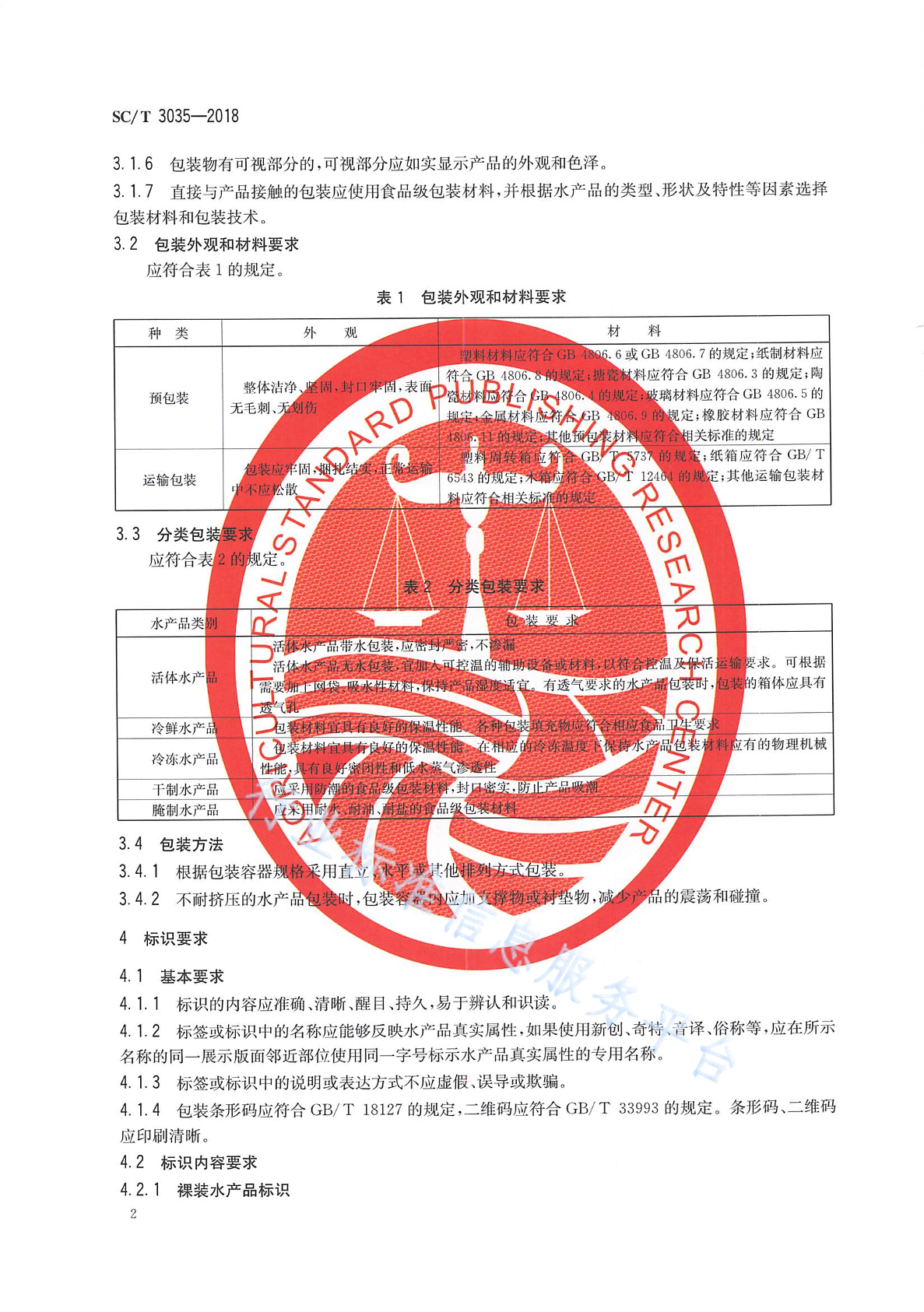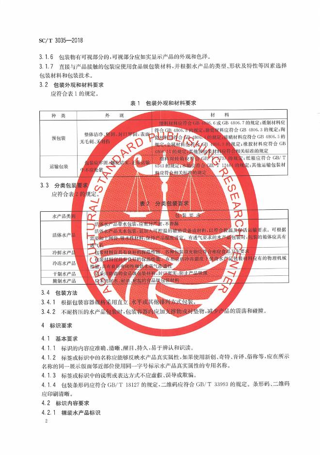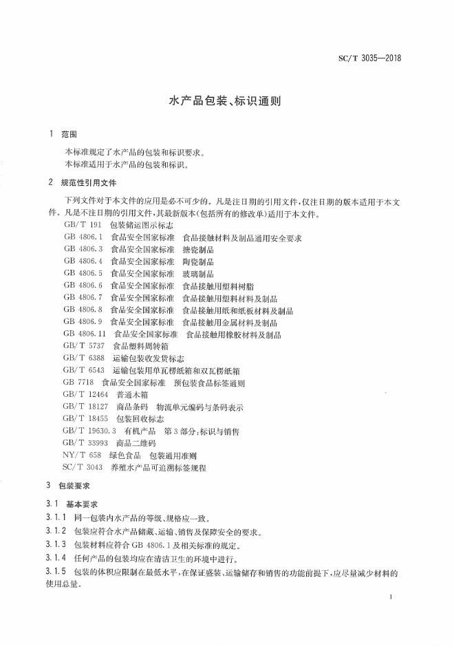 SC/T 3035-2018 水产品包装、标识通则