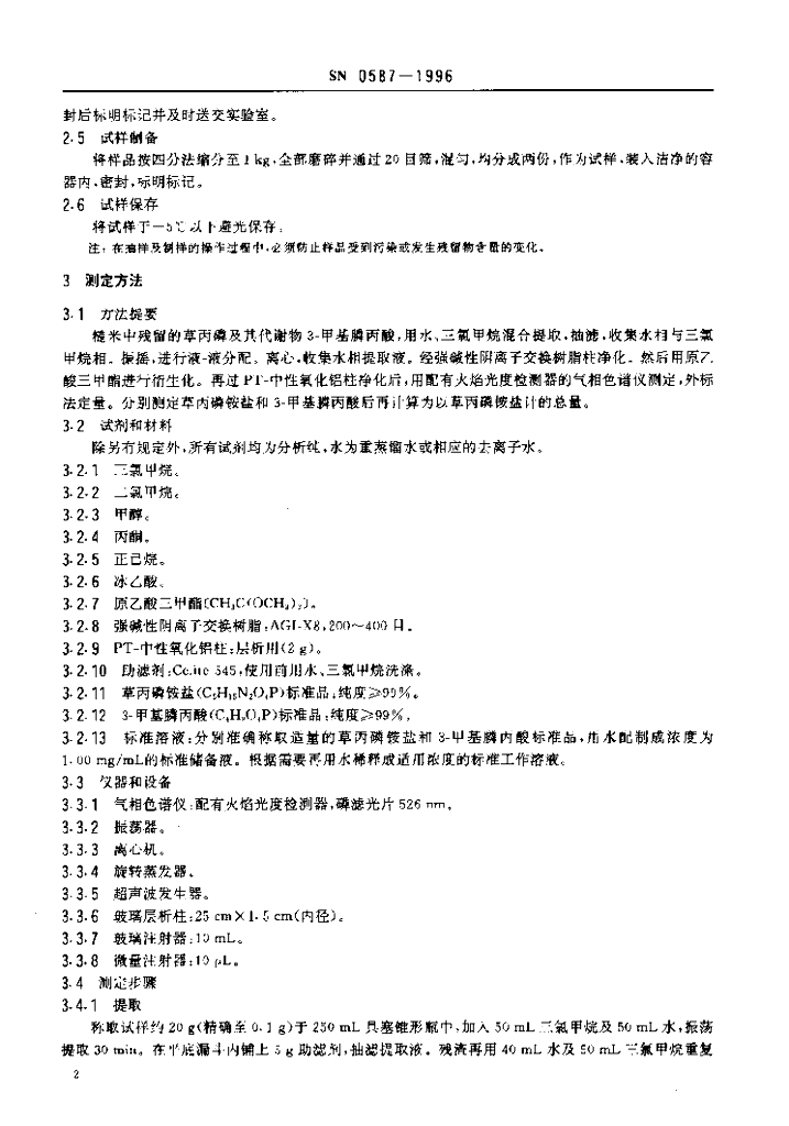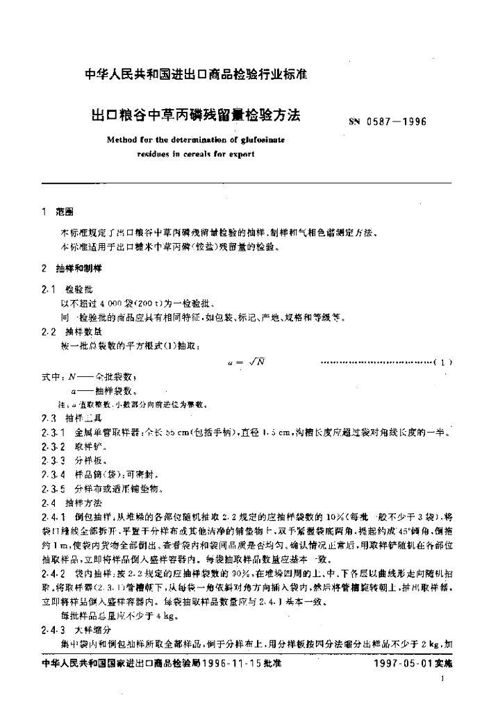 SN 0587-1996 出口粮谷中草丙磷残留量检验方法
