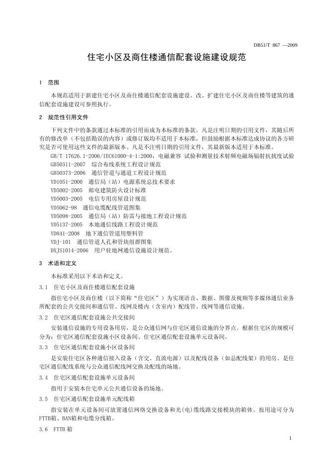 DB51/T 867-2009 住宅小区及商住楼通信配套设施建设规范