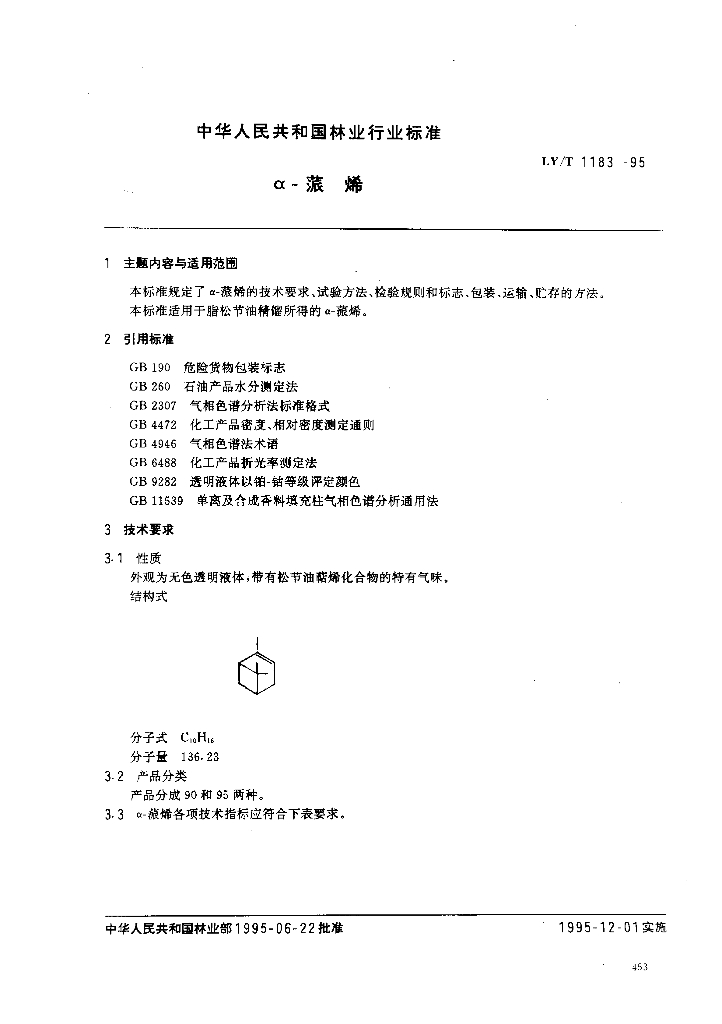 LY/T 1183-1995 α-蒎烯