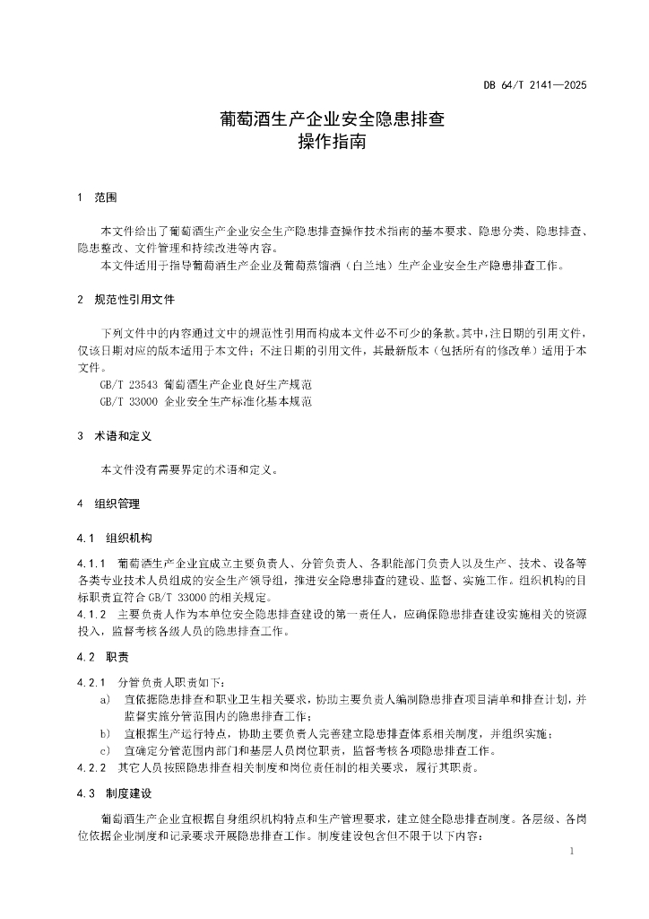DB64/T 2141-2025 葡萄酒生产企业安全隐患排查操作指南