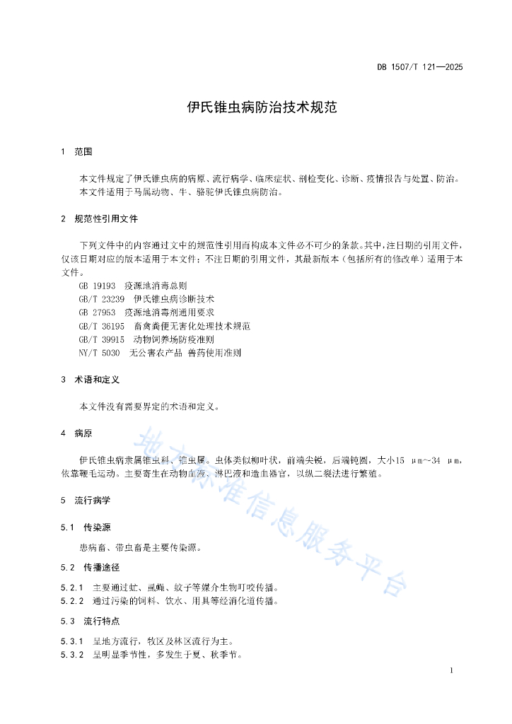 DB1507/T 121-2025 伊氏锥虫病防治技术规范