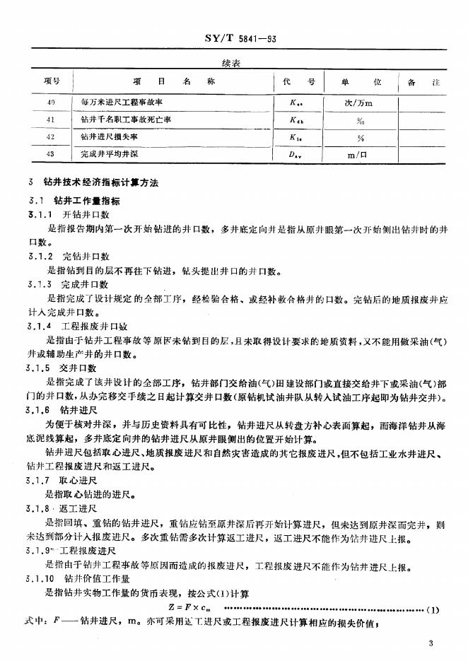SY/T 5841-1993 钻井技术经济指标及计算方法