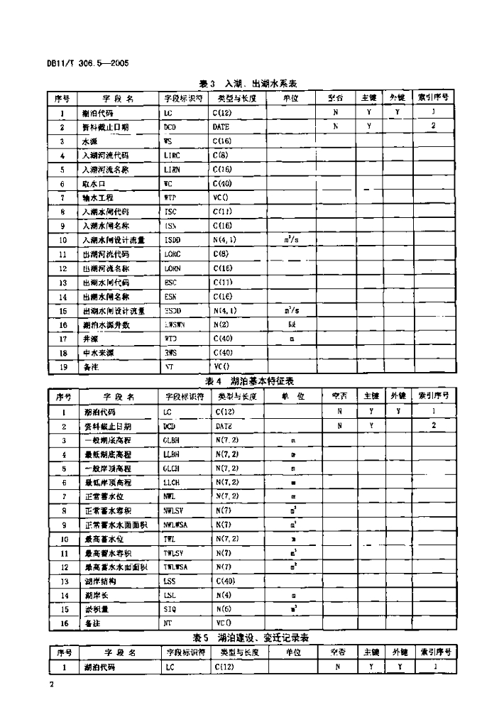 DB11/T 306.5-2005 水利工程数据库表结构 第5部分:湖泊