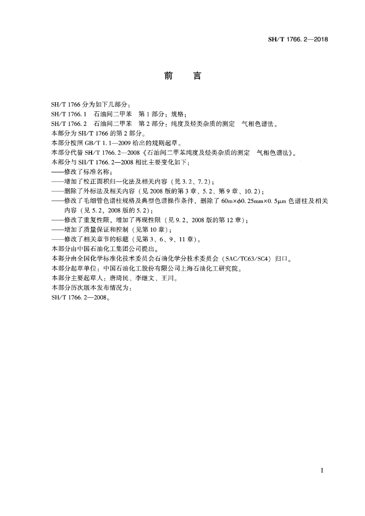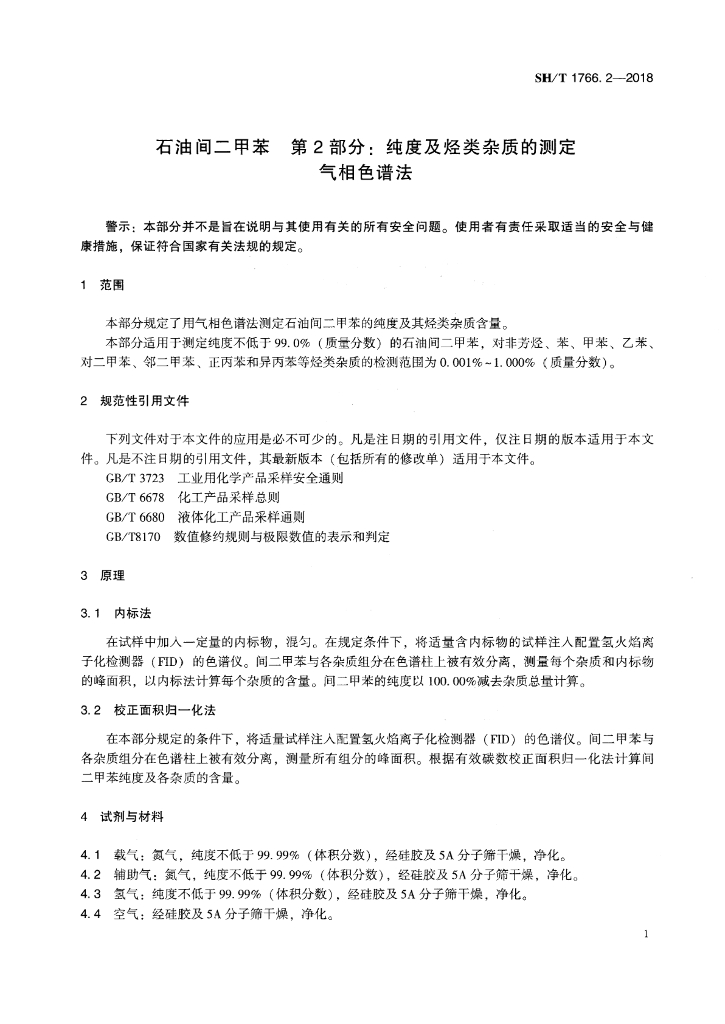 SH/T 1766.2-2018 石油间二甲苯 第2部分:纯度及烃类杂质的测定 气相色谱法