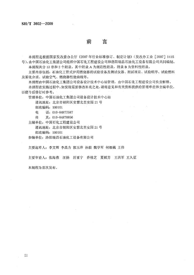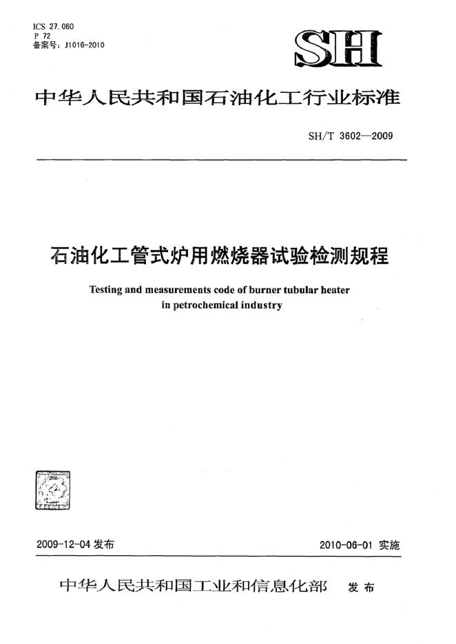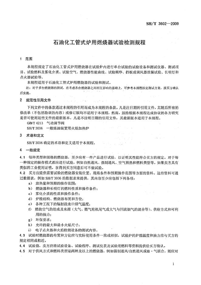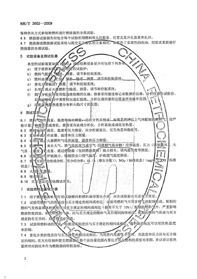 SH/T 3602-2009 石油化工管式炉用燃烧器试验检测规程