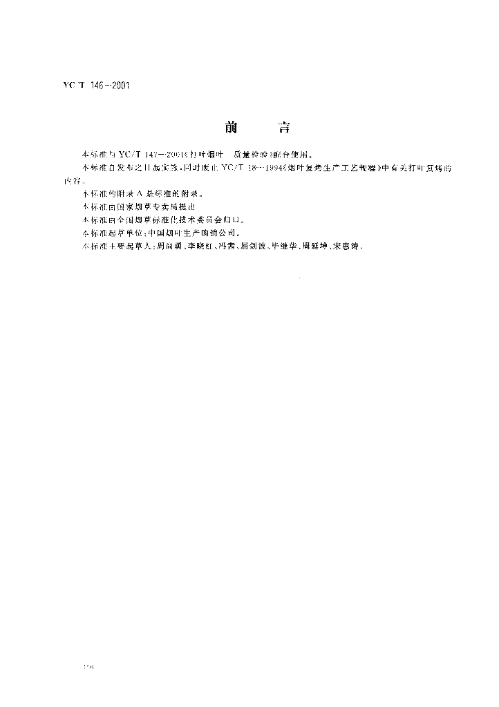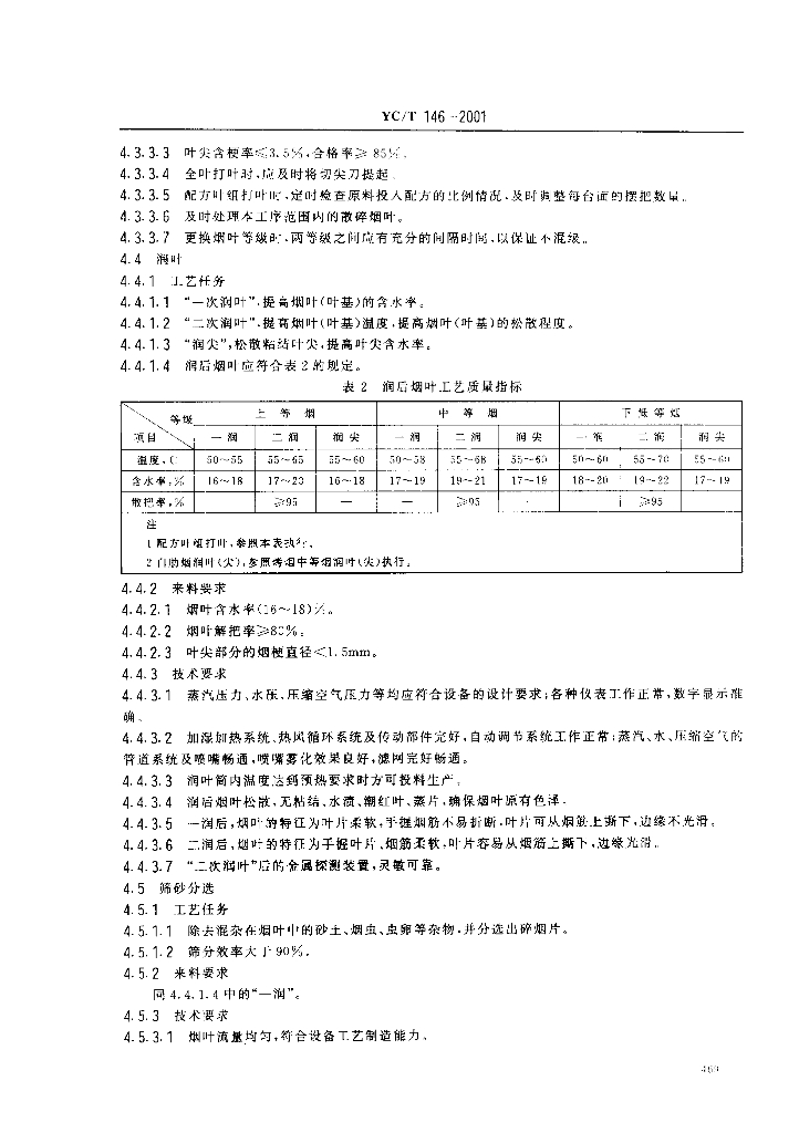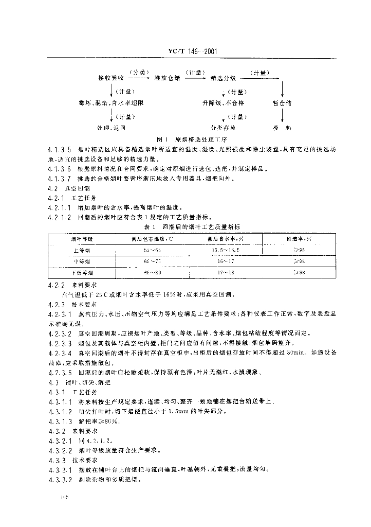 YC/T 146-2001 烟叶 打叶复烤 工艺规范