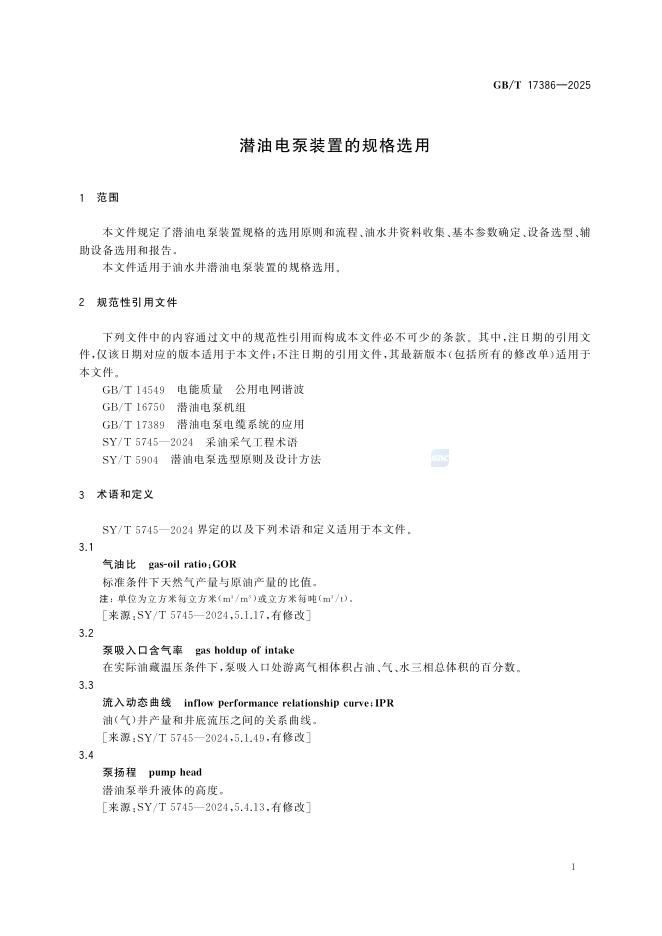 GB/T 17386-2025 潜油电泵装置的规格选用