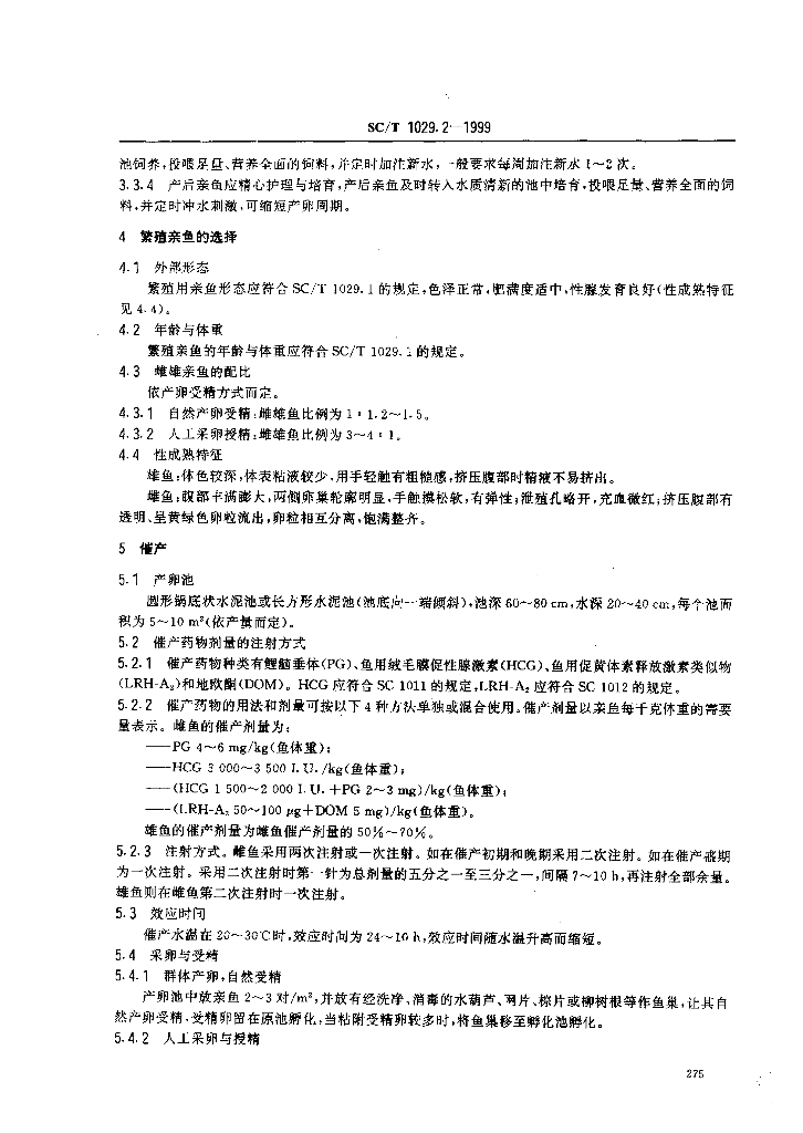 SC/T 1029.2-1999 革胡子鲇养殖技术规范 人工繁殖技术