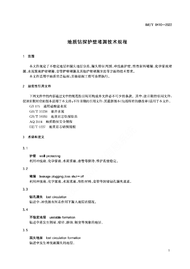 DZ/T 0410-2022 地质钻探护壁堵漏技术规程